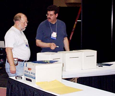 The other user groups get plain white boxes for the drawings each day, but we put on the contest rules and the great picture of the Statue of Liberty on them.